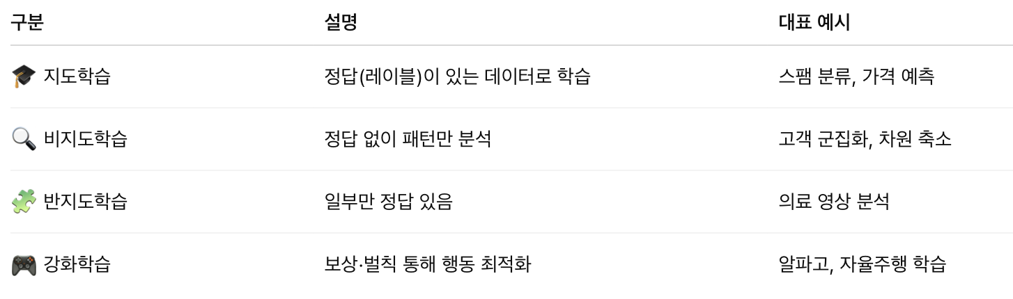 - 머신러닝은 데이터를 통해 스스로 배우는 기술,